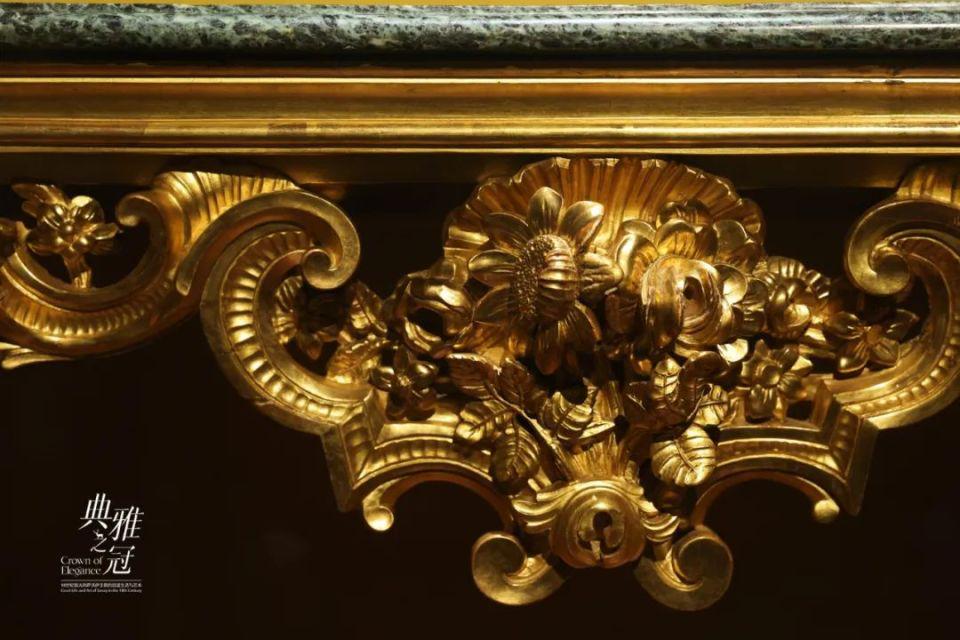 ▲桌身布满灵动曲线与繁复雕花,腿部涡卷造型优美,鎏金闪耀华丽,是典型的洛可可风格杰作。下图来源:广东省博物馆
